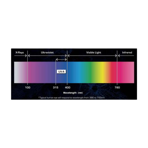 Traditionally the entertainment industry has used the UV-A spectrum (315-400nm), which is not harmful to humans, widely adopted in light fixtures, counterfeit detection, medical use and industrial curing.