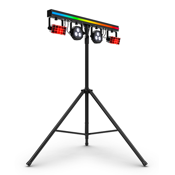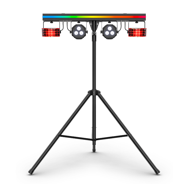 GigBar 3 ILS brings on the good times fast with Instant Light Show technology that wirelessly syncs multiple fixtures of different types. Get in and out quickly, and spend less time on setup, with an ILS-compatible 3-in-1 pack-n-go kit that comes with tripod, wireless footswitch and carry bags. GigBar 3 ILS includes an LED strip for eye-candy effects, LED pars for color wash coverage, and LED derbies that send multicolored chasing beams across the dancefloor. Add up to 4 additional fixtures to create your own custom mobile lighting setup.
