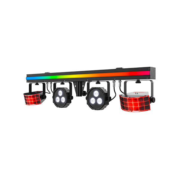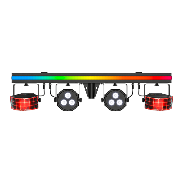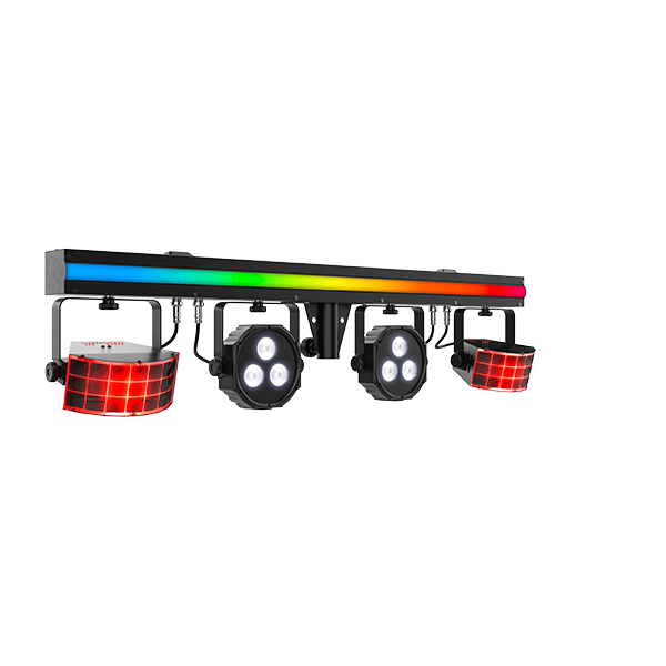 - 3-in-1 light that includes a pair of LED derbies, LED pars, and an LED strip, all mounted on one bar
